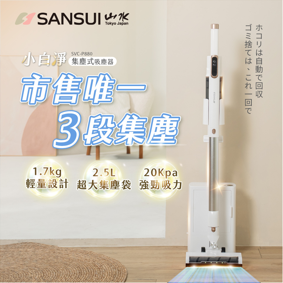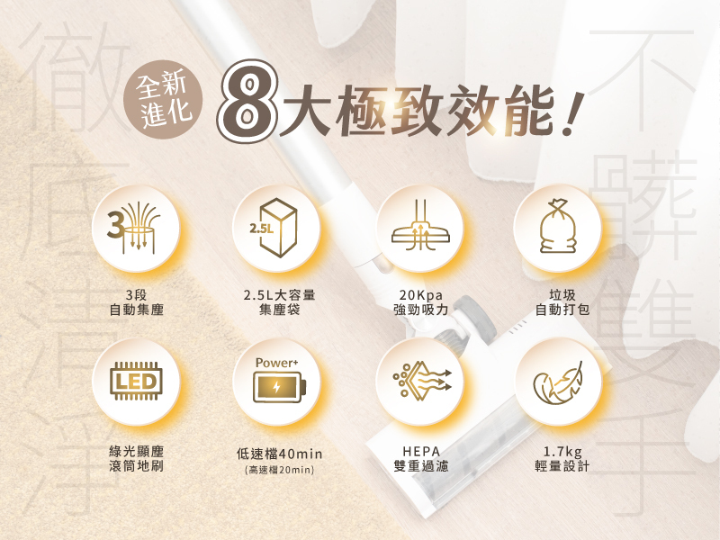 ● 3段自動集塵,20Kpa強勁吸力