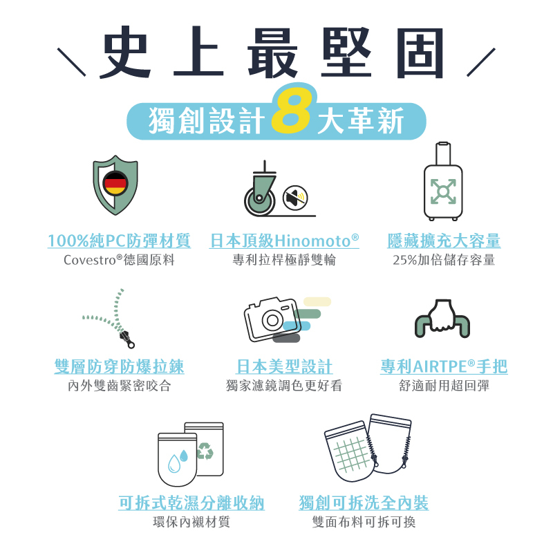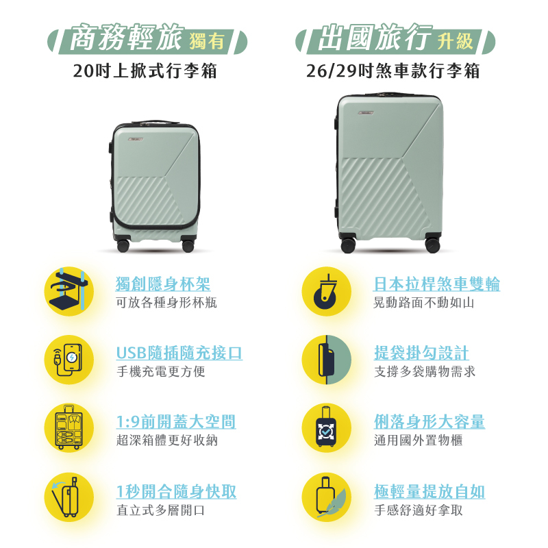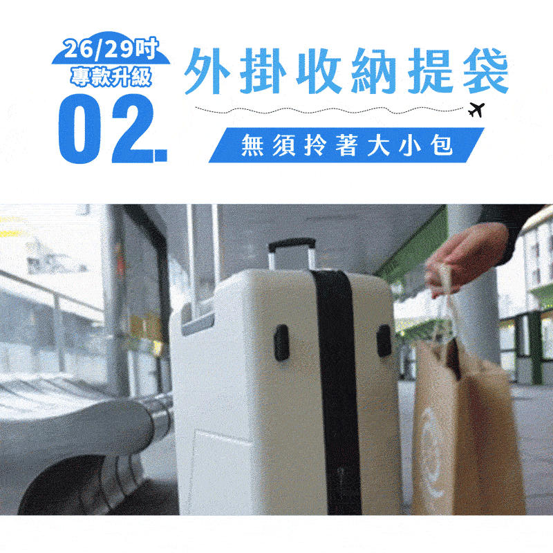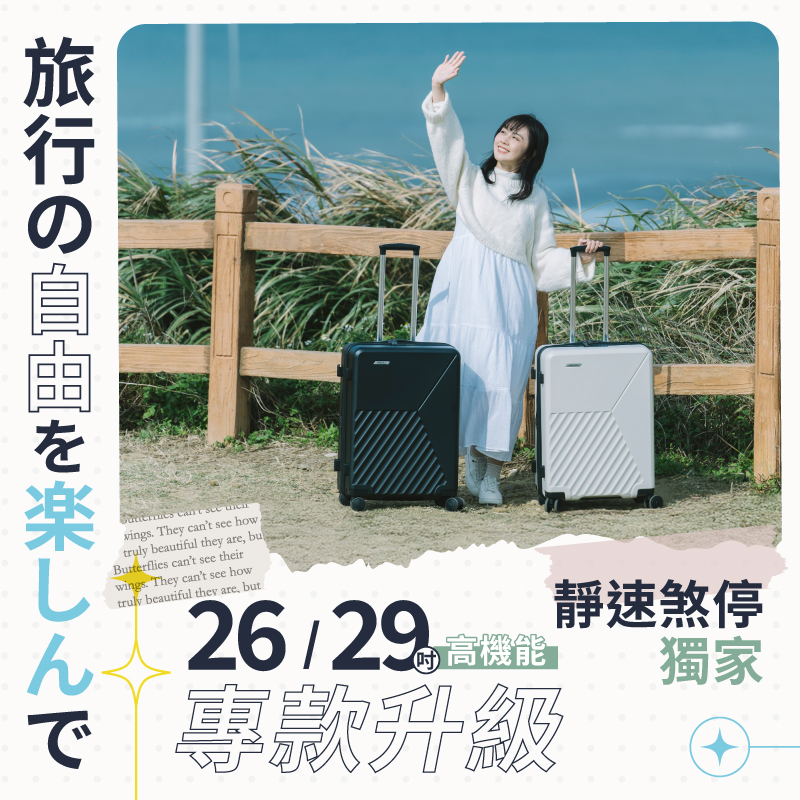 ● 26/29吋出國升級,煞車雙輪/提袋掛勾設計/俐落大容量
