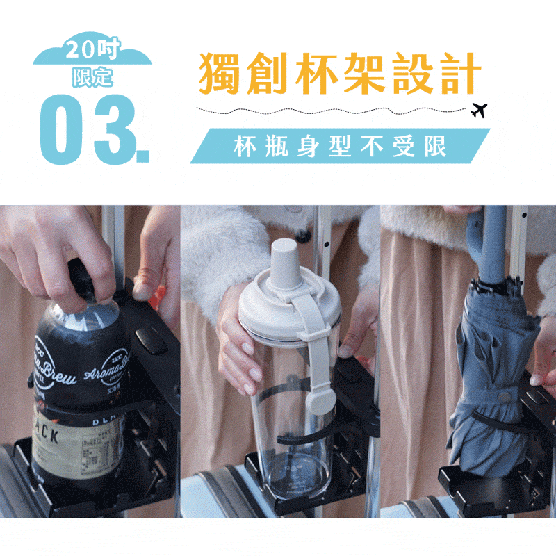 ● 20吋輕旅獨有,隱身杯架/USB隨插隨充接口/1:9前開大空間
