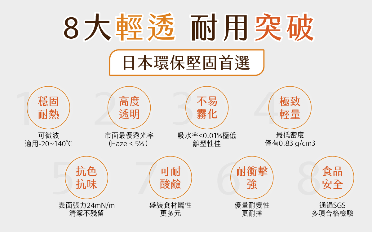 ● 日本頂級TPX™環保材料,不易沾黏、不易留色
