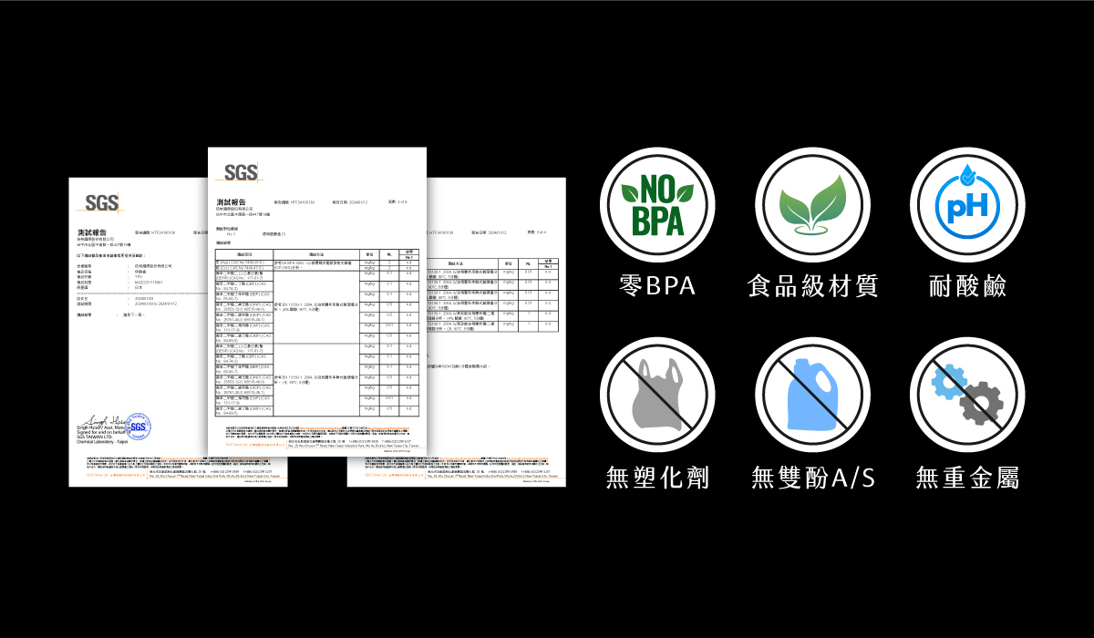● 通過台灣SGS認證,無塑化劑/BPA/重金屬物質