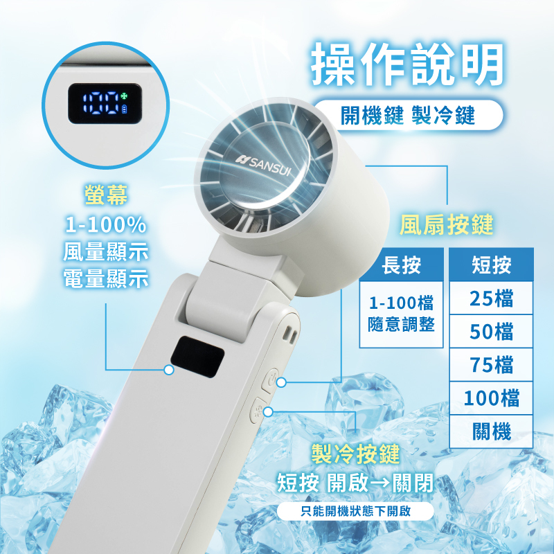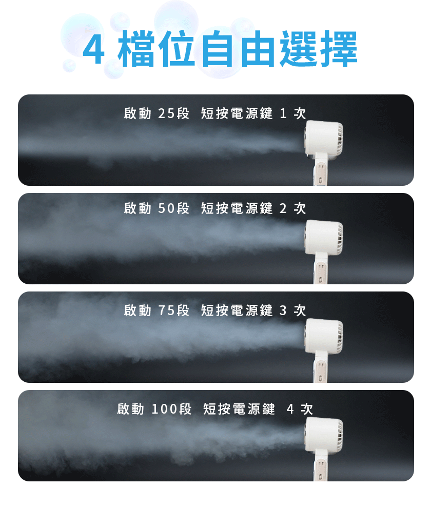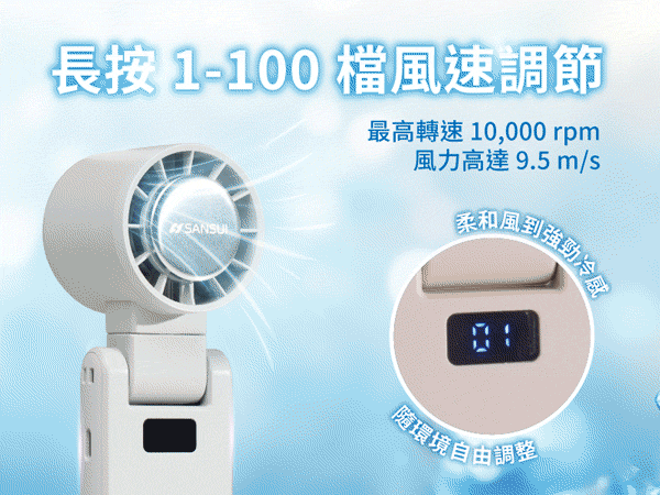 ● 100檔風速調節,最大風速達9.5m/s