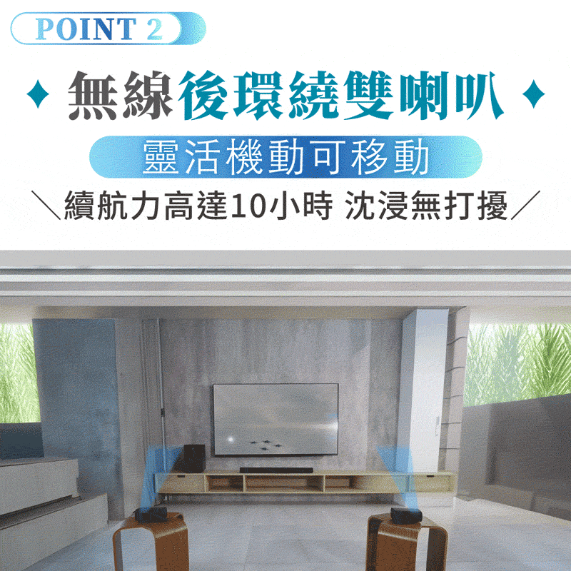 ● 雙無線後環繞喇叭|環繞加倍,高度有聲