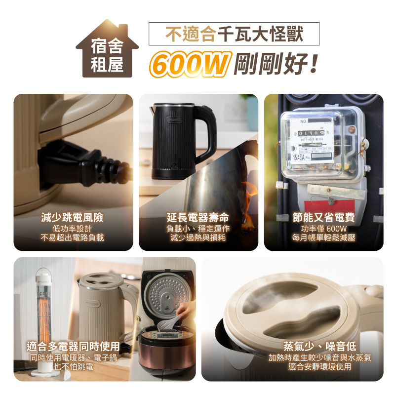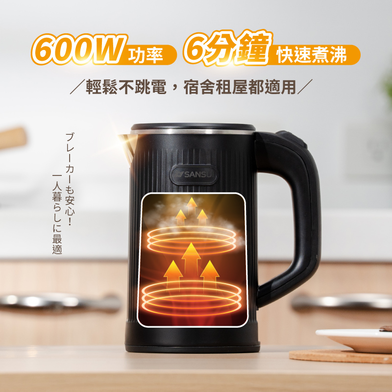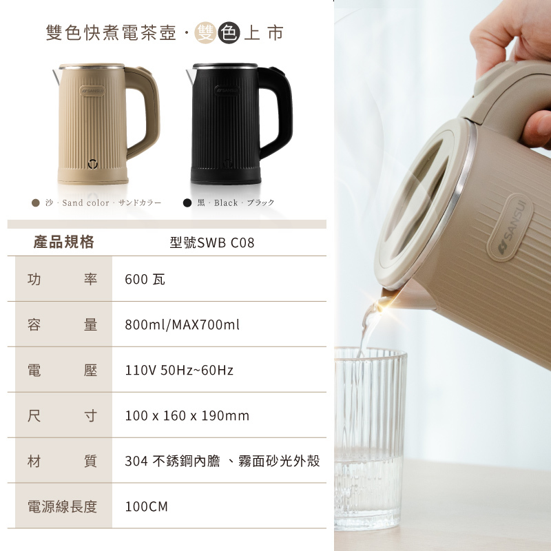 【SANSUI山水】0.8L低功率輕便溫控電茶壺/快煮壺 SWB-C08