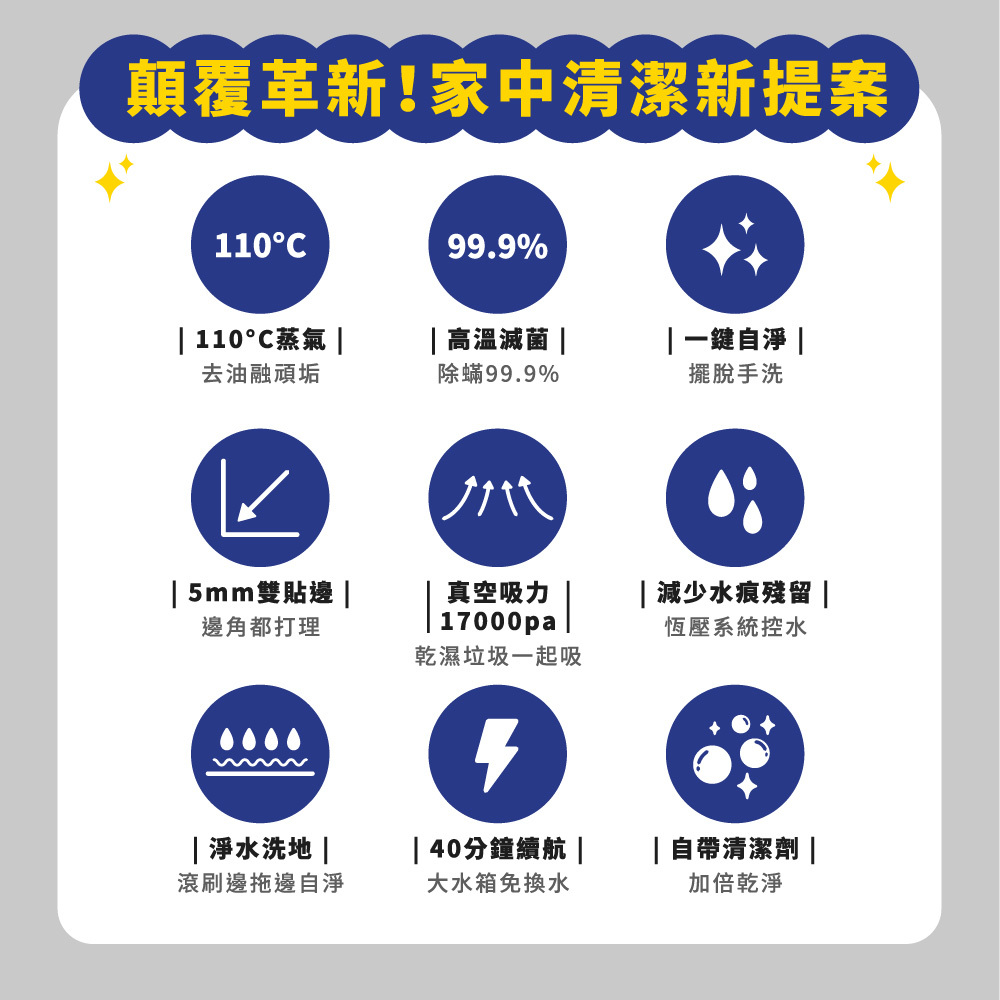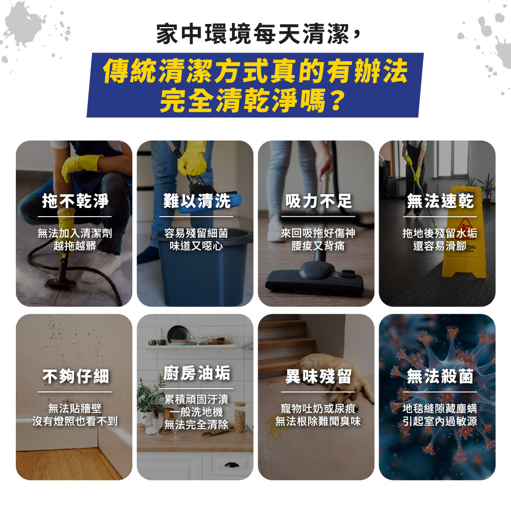 ● 極速蒸氣噴發,110°C瞬間瓦解頑固污垢