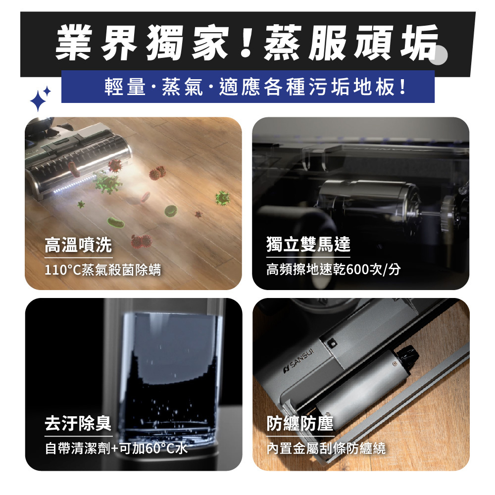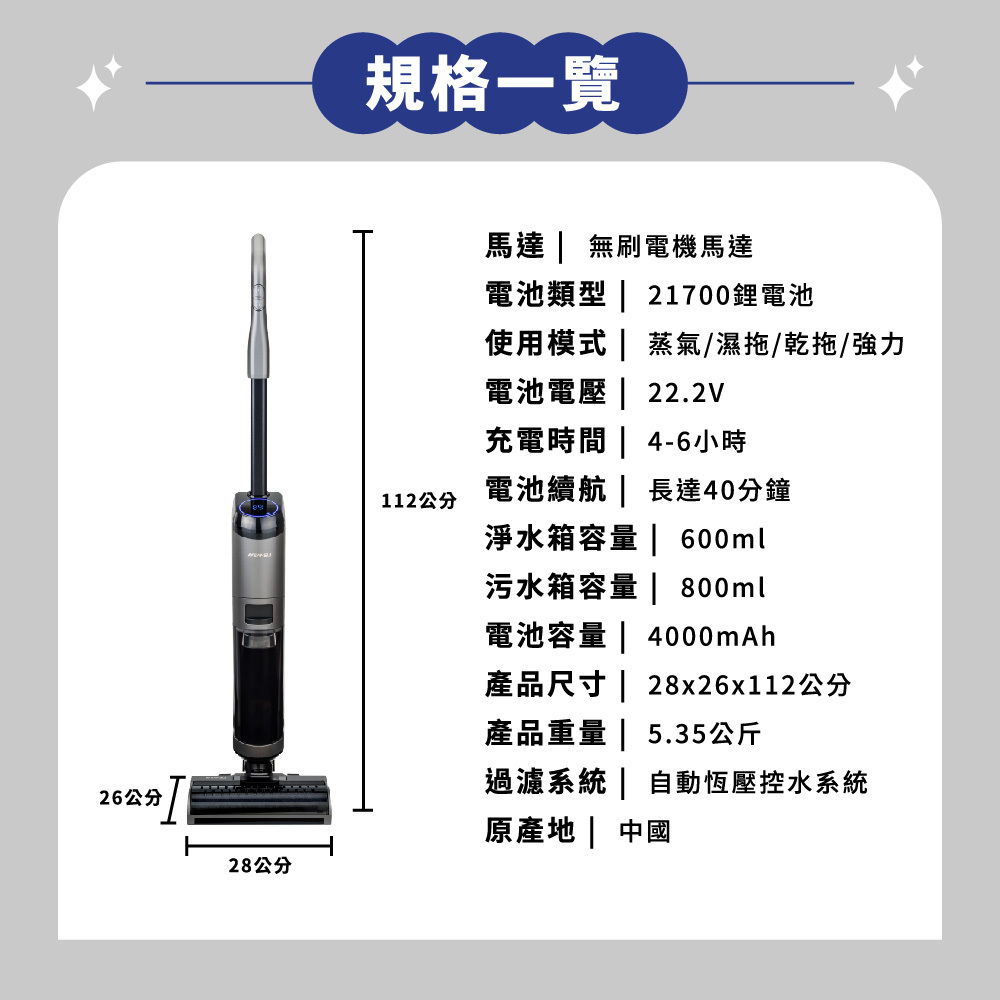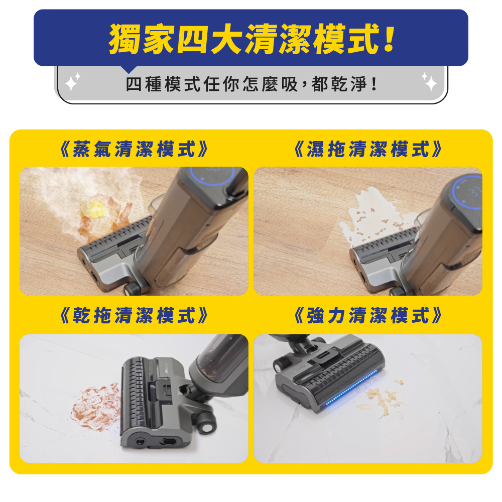 ● 多模式切換:蒸氣/濕拖/乾拖/強力清潔任你選