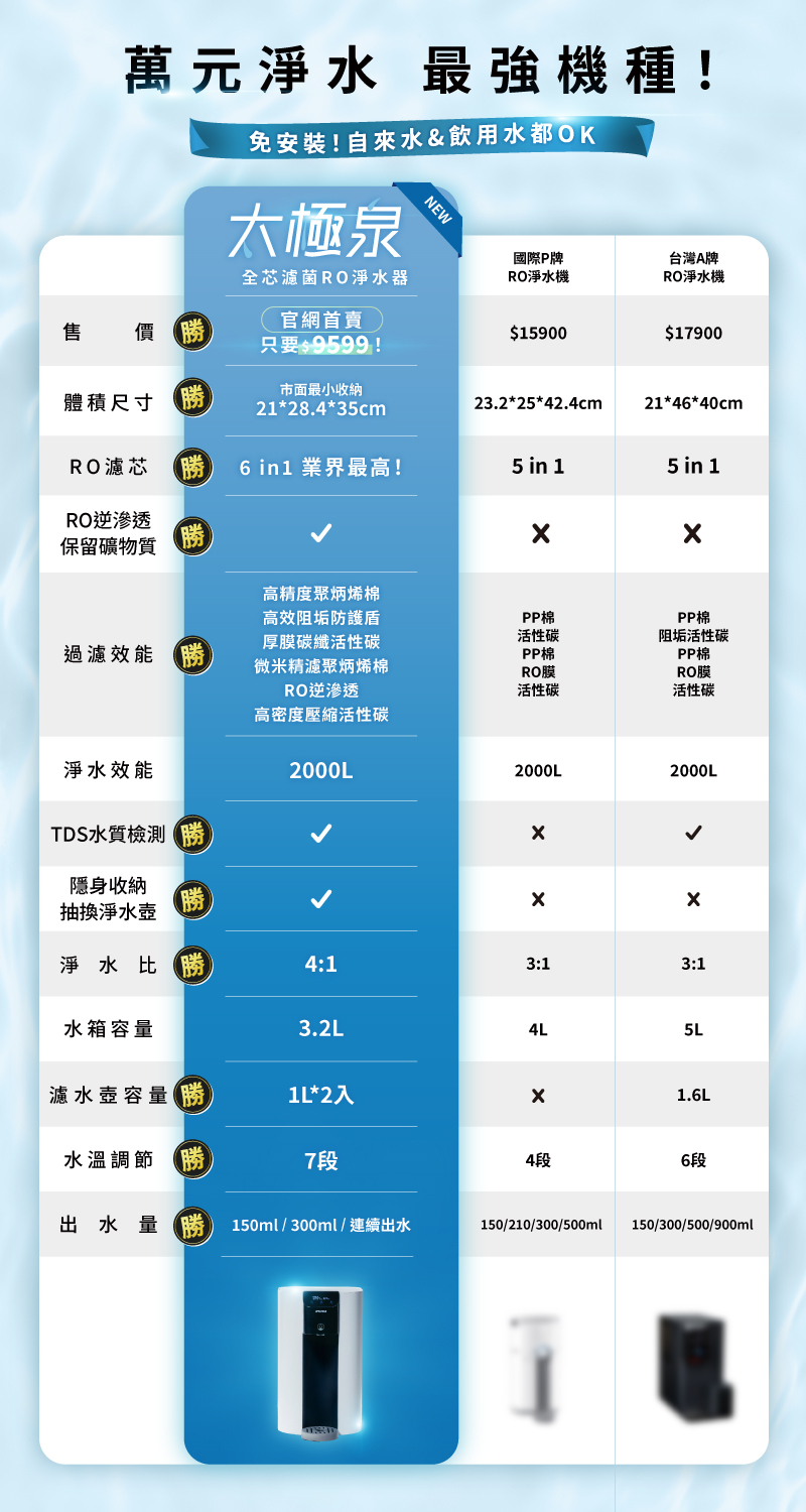 ● 超大淨水量|高達2000L,淨水1L不到$2