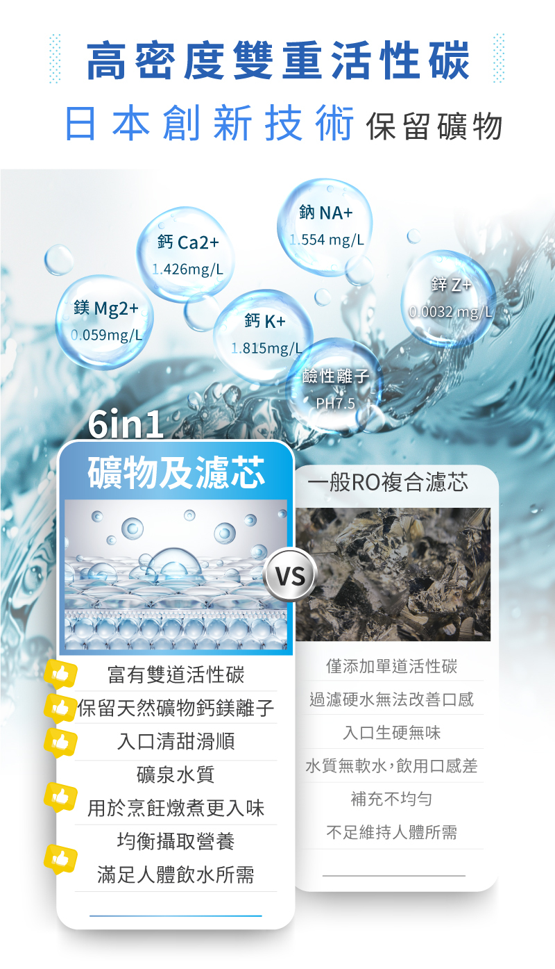● 礦物級活性碳|鹼性還原,創造天然礦泉水口感