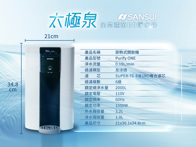 【SANSUI山水】太極泉|全芯濾菌RO淨水器 Purify ONE