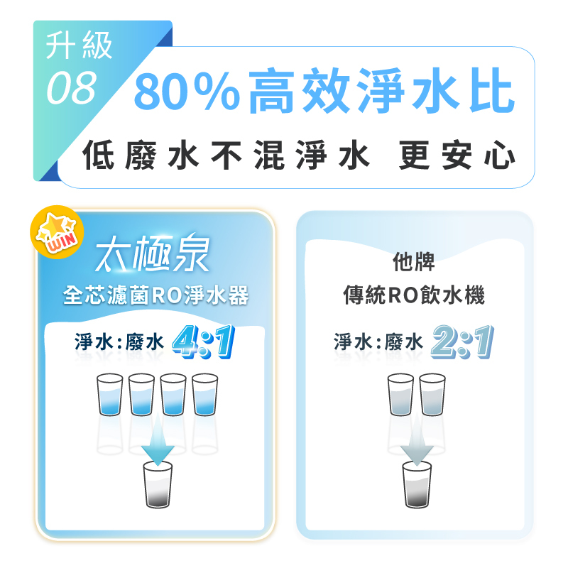 ● 80%高淨水比|廢水僅存外水箱,淨水獨立無汙染