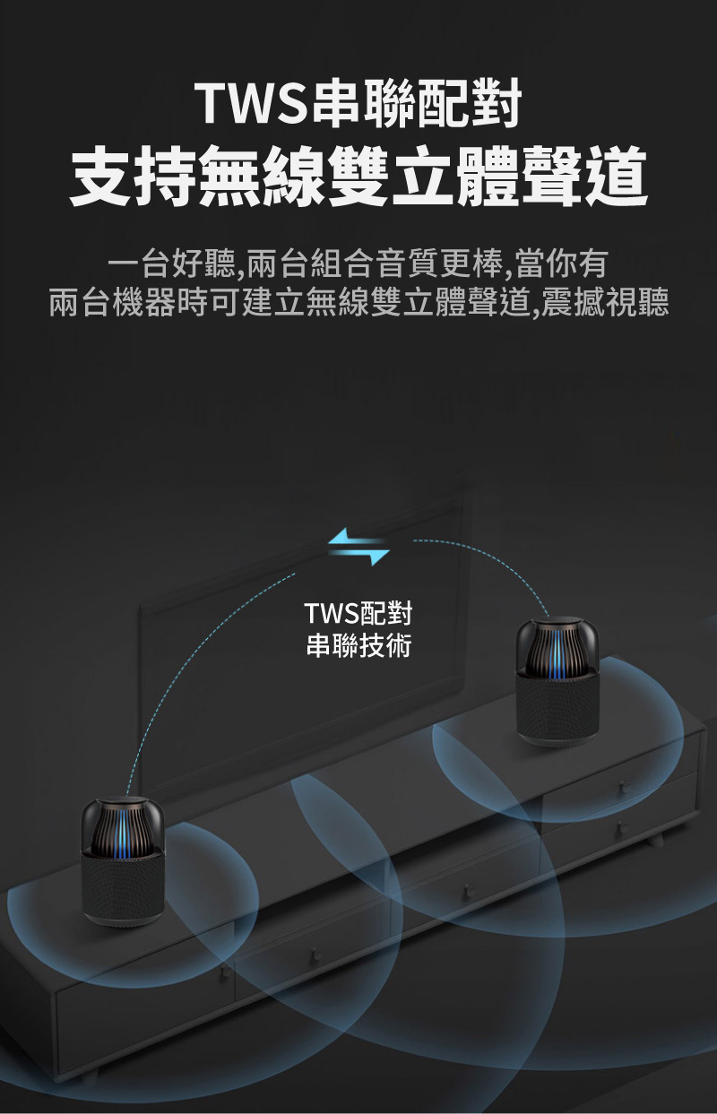 ● TWS串聯配對,雙立體聲道