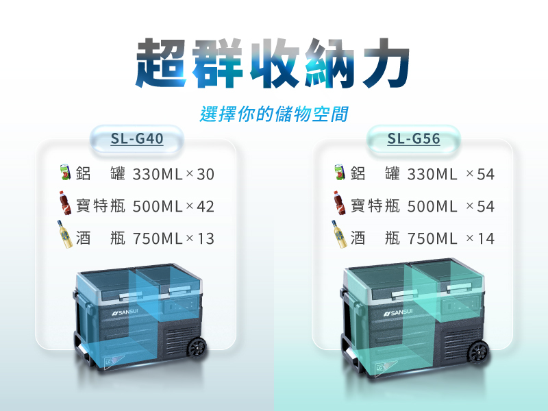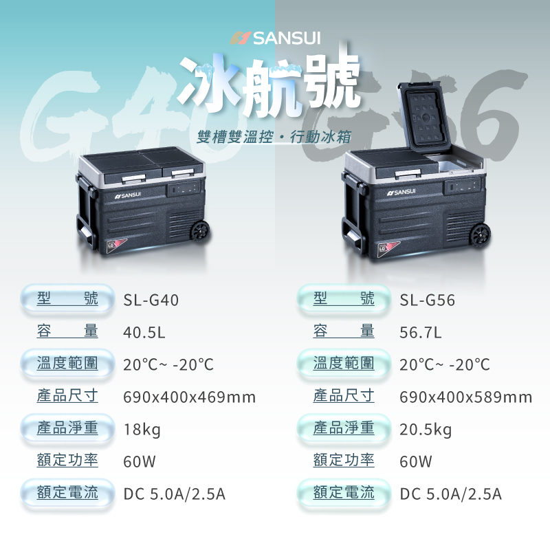 【SANSUI山水】冰航號|LG壓縮機雙槽雙溫控行動冰箱 SL-G40/SL-G56