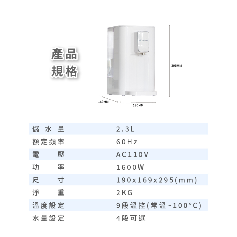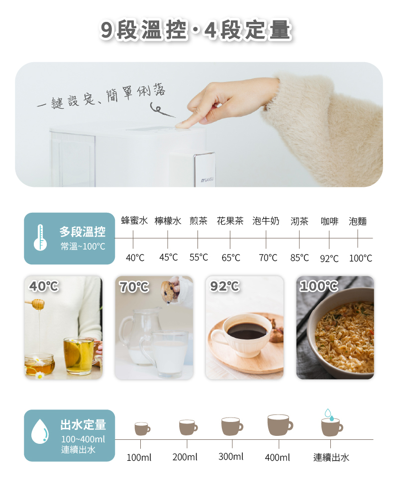 ● 9段溫控,4段定量出水可選