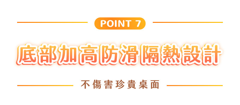 ● 加高防滑隔熱底座,不傷害珍貴桌面
